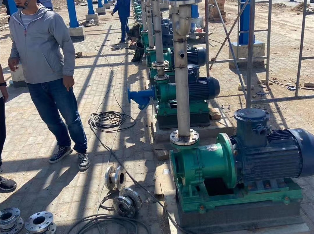 組成部分:全氟泵殼、葉輪、磁力耦合器、加強(qiáng)套、密封件、底座、電機(jī)。