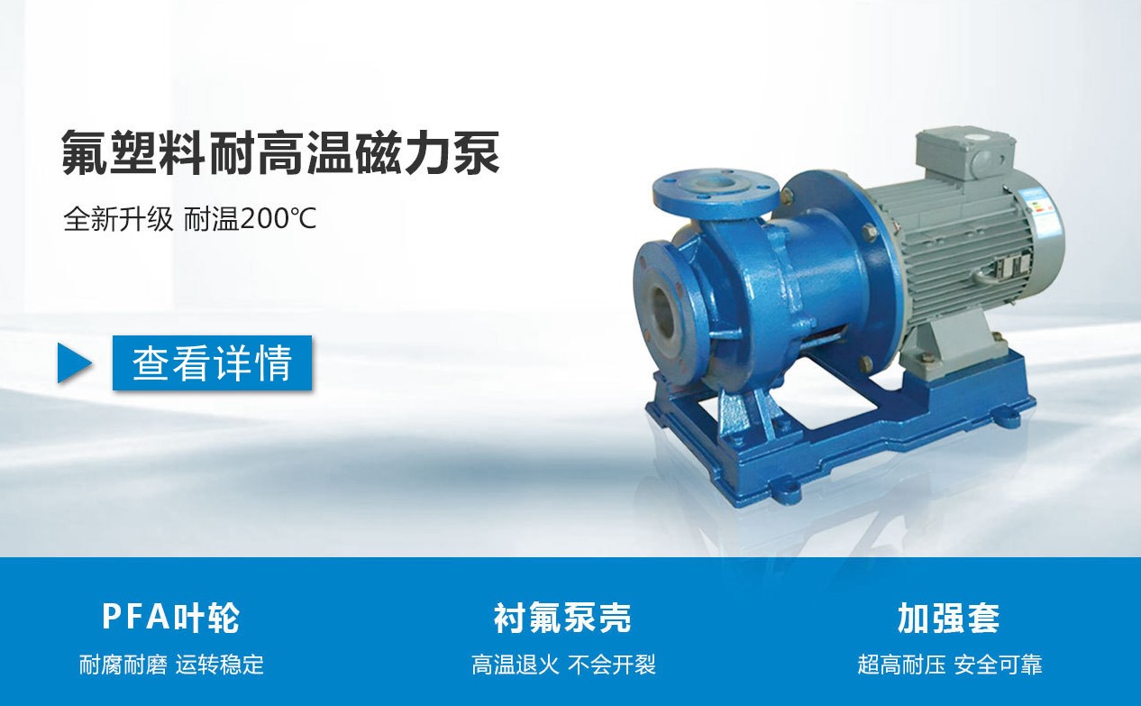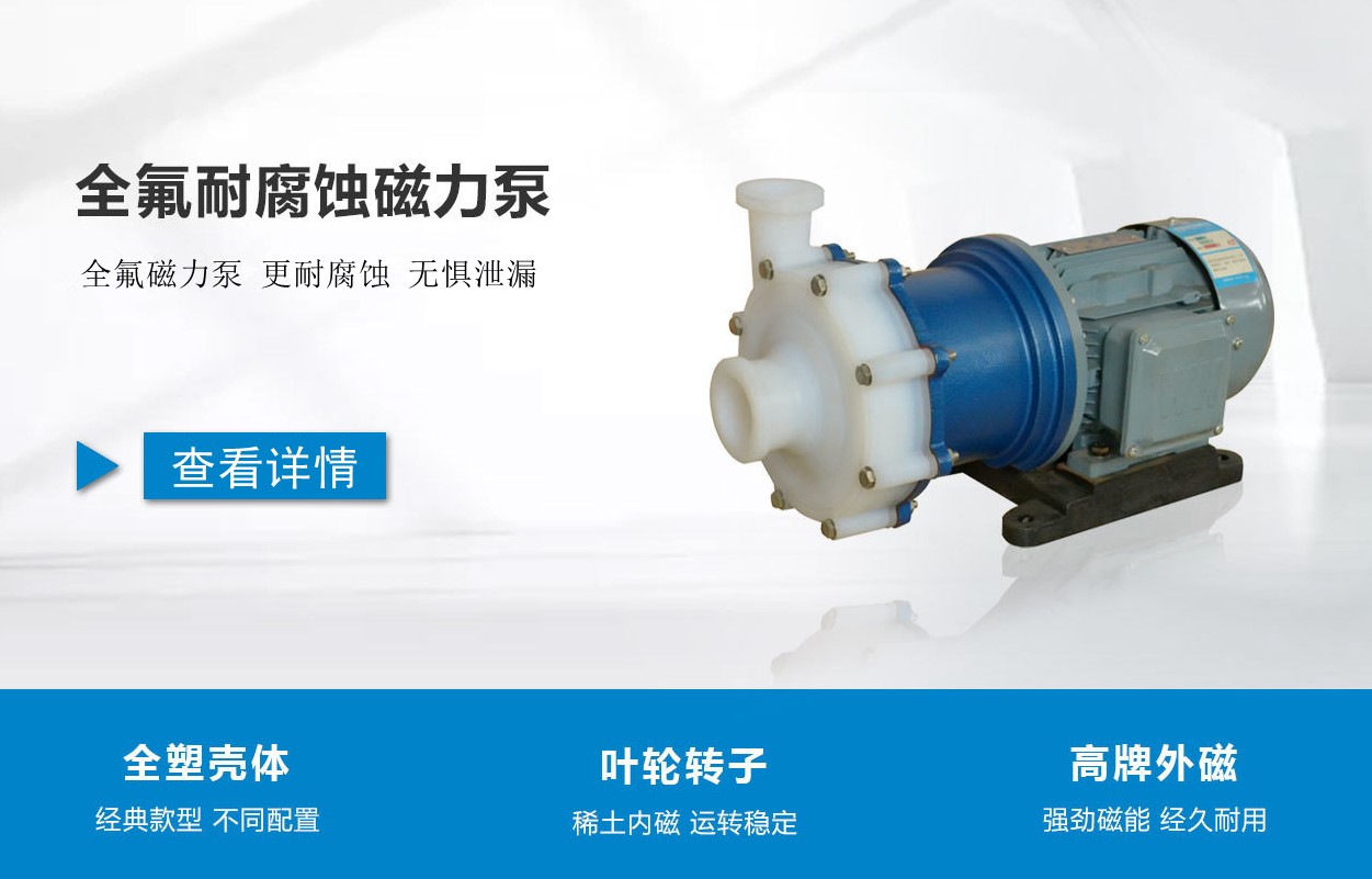 組成部分:襯氟泵殼、葉輪、磁力耦合器、加強(qiáng)套、密封件、底座、電機(jī)。